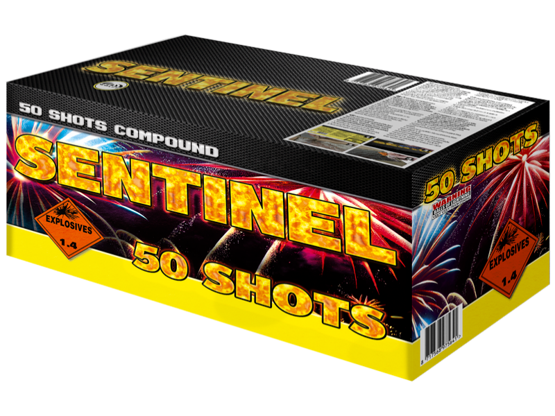 Sentinel nEen onverslaanbare vuurwerk compound met het grootste kaliber en de dikste effecten! n nKruitgewicht 978 Gram nTube diameter 30 nBrandtijd 30 Seconden nHoogte 30 m. – 35 m. Sentinel Goedkoop vuurwerk kopen bij Vuurwerkwinkel Eindhoven